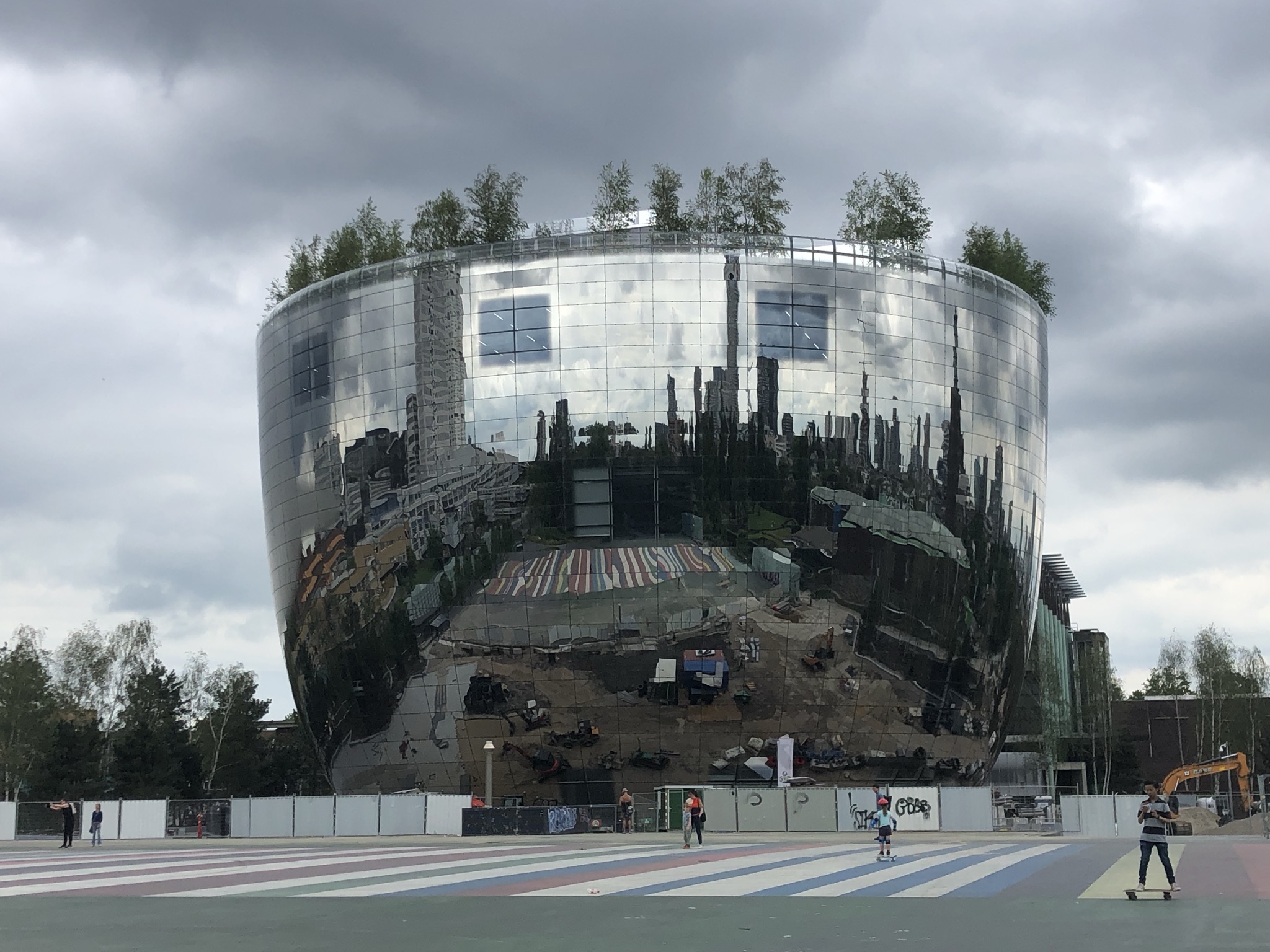 Previous image Next image Reflections in Rotterdam’s newest structure Reflections of the multi coloured zebra crossing and construction underway